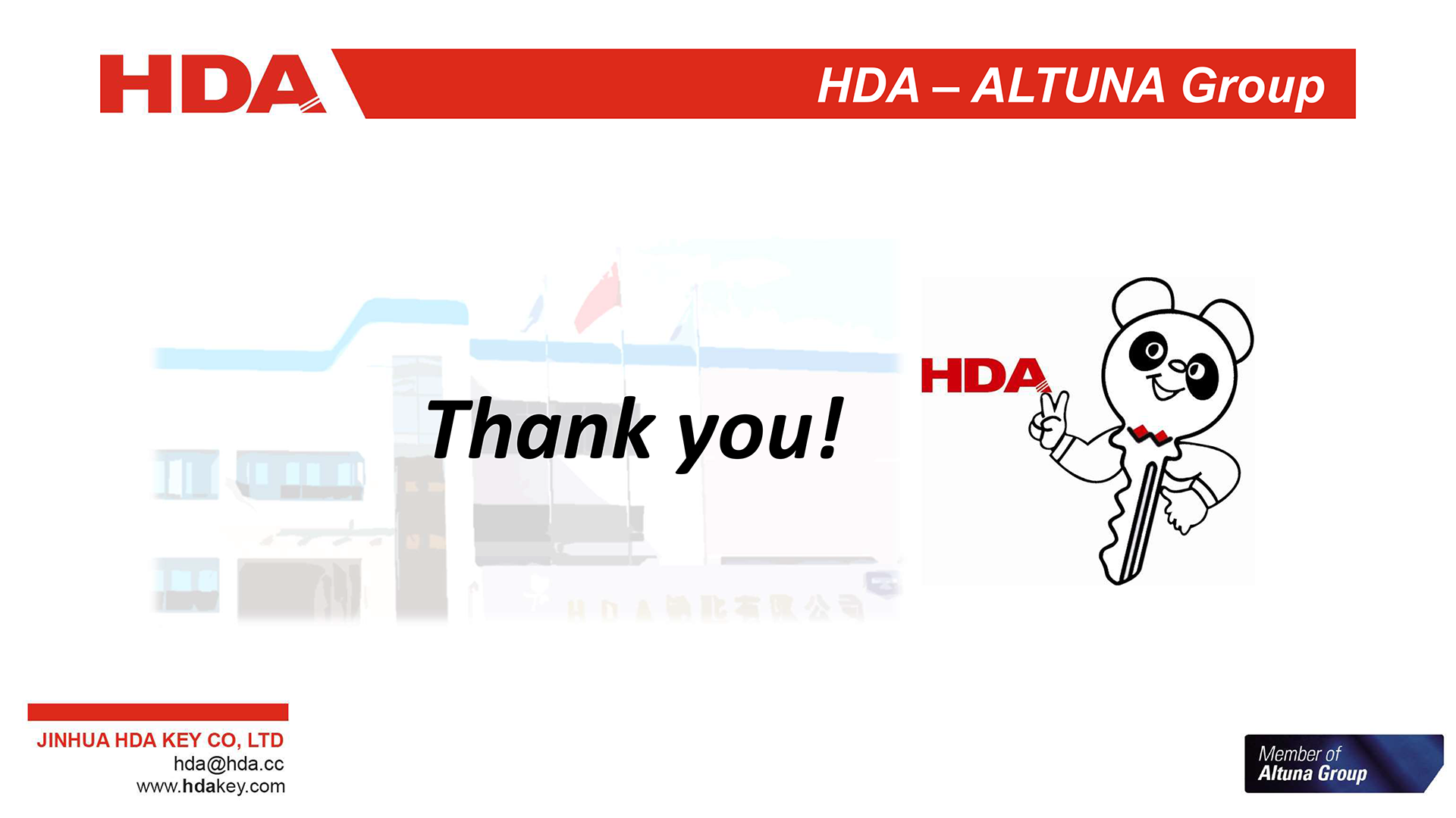 2005年,與歐洲三大鑰匙坯生產(chǎn)企業(yè)之一的西班牙JMA集團成立合資公司--金華HDA鑰匙有限公司。 2007年,轉(zhuǎn)為西班牙JMA集團獨資子公司。